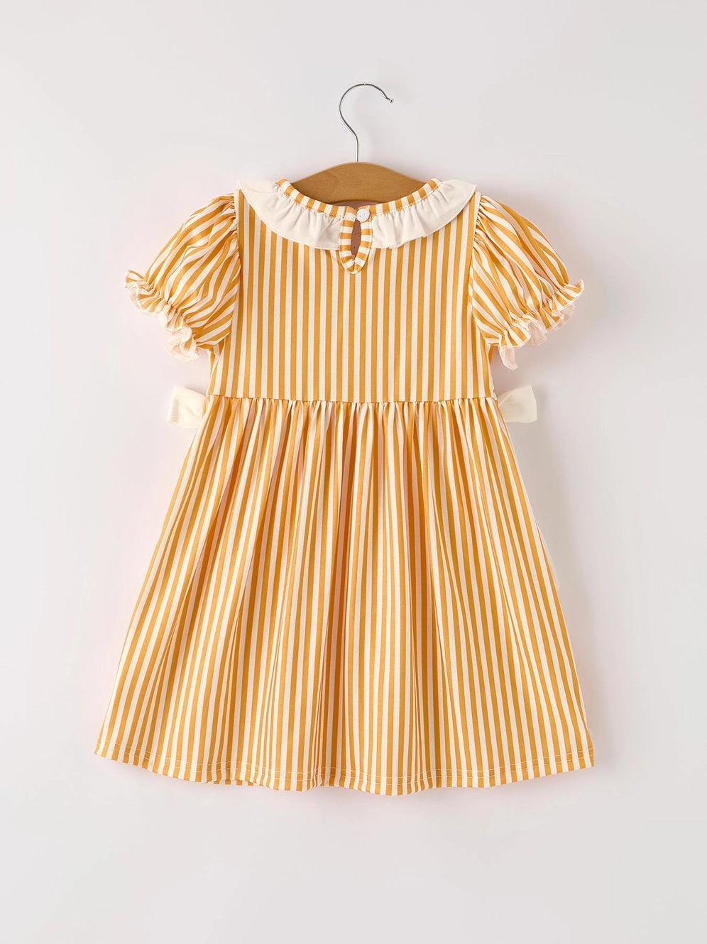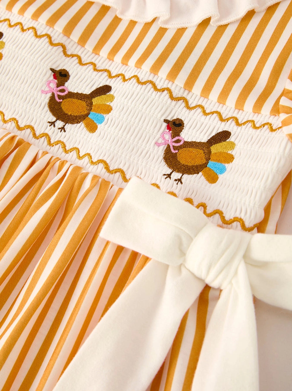 Fall Thanksgiving Orange Smock Embroidery Baby Girl Dress and Bubble