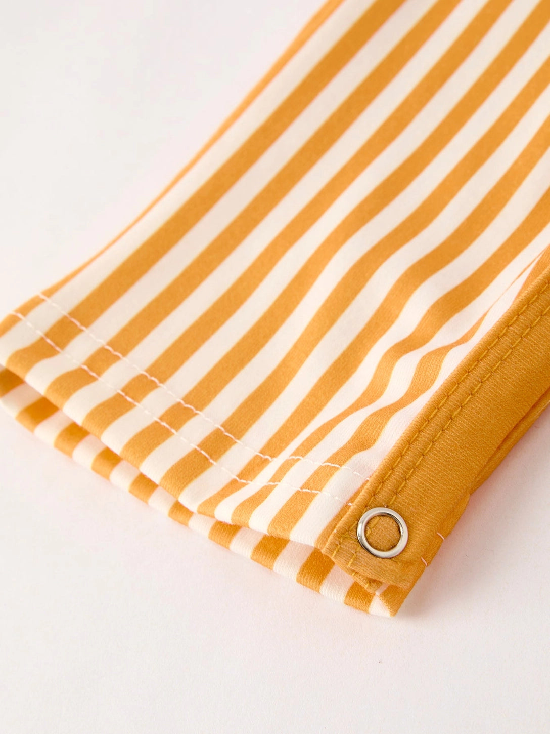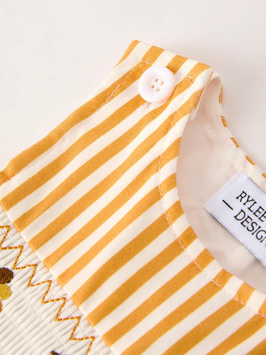 Celebrate the season in style with this charming Fall Thanksgiving Smock Romper for boys. Featuring playful embroidered details and vibrant orange stripes, it combines festive flair with comfortable wear. Perfect for family gatherings or holiday photos, this romper ensures your little one looks adorable while staying cozy throughout the festivities.