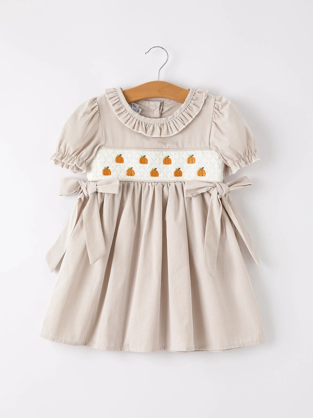 Halloween & Thanksgiving Pumpkin Embroidery Smock Plaid Girls Dress